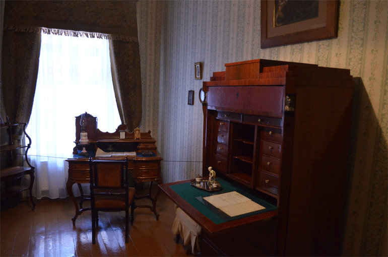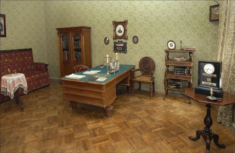 Με το πέρασμα του χρόνου, στο σπίτι της οδού Κουζνέτσνι συντελέστηκαν μεγάλες αλλαγές κι έτσι, όταν αποφασίστηκε η μετατροπή του σε μουσείο,προέκυψε η ανάγκη να ανακατασκευαστεί το διαμέρισμα βάσει των αρχικών σχεδίων αλλά και μαρτυριών. Συγκεκριμένα, για την ανακαίνιση του γραφείου του, το οποίο χαρακτηρίζεται από μεγάλη απλότητα, οι σχεδιαστές στηρίχτηκαν σε μια φωτογραφία που είχε τραβήξει ο V.Taube μετά το θάνατο του συγγραφέα.