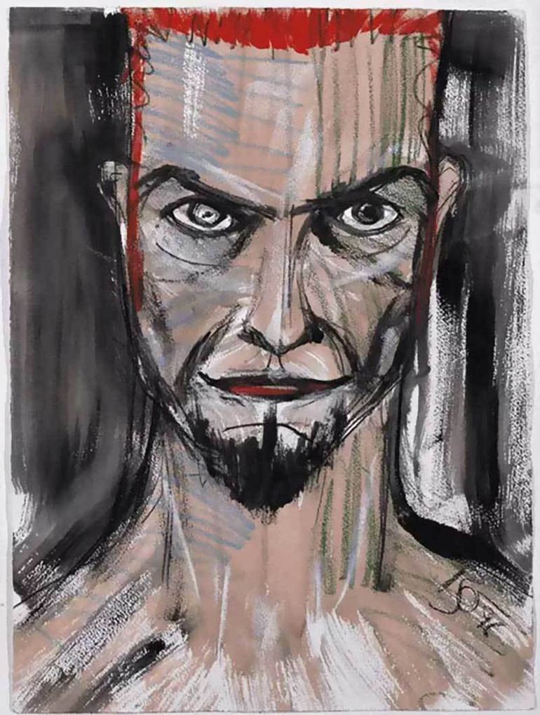 Κι όμως. Η ενέργεια που έβαλε στις μελωδίες του, στις περφόρμανς του, στους δυνατούς στίχους του ξεχειλίζει και από το κάδρο του πίνακα. Τα μουσικά του βίντεο, οι εικόνες στα εξώφυλλα των άλμπουμ του, οι περσόνες του πάνω στη σκηνή είναι μαγνήτης για το μάτι. Μαγνητίζουν το μάτι και οι πίνακες του. Αυτό το στατικό που περιμένει κανείς μέσα στο πλαίσιο ενός έργου ζωγραφικής, στα χέρια του Ντέιβιντ παύει να είναι στατικό.