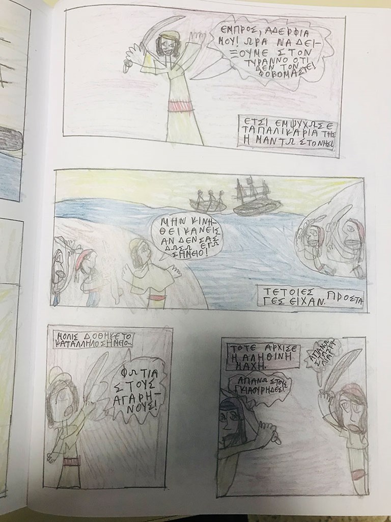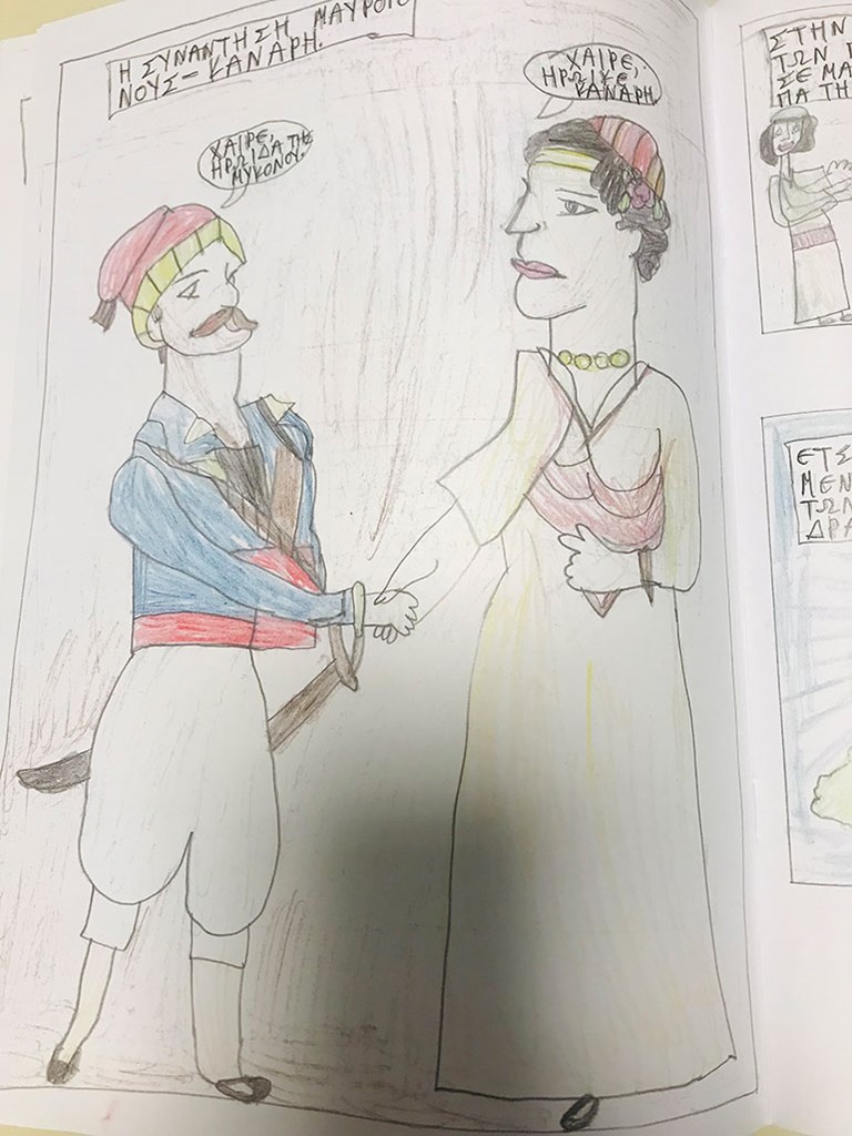 «”Μια κόρη απλή, μεγαλωμένη σ’ ένα βράχο, θρεμμένη μέσα στη θλίψη, μη αναπνέοντας παρά τον αέρα του πατριωτισμού”- έτσι περιγράφει τον εαυτό της η Μαντώ Μαυρογένους σε μια επιστολή της προς τις Παρισινές κυρίες. Εμένα με συγκλόνισε η απόλυτη στάση της να συμβάλει στον αγώνα μια όμορφη και πλούσια γυναίκα, που μπήκε στον αγώνα του 1821, δίνοντας τα πάντα. Πιστεύω πως μπορούμε να διδαχτούμε πολλά από αυτήν!», αναφέρει χαρακτηριστικά η Νικολέτα, που με τη δημιουργία της θέλει να φέρει μικρούς και μεγάλους κοντά στη μεγάλη ηρωίδα, αφηγούμενη τη ζωή της μέσα από τις εικόνες και τις λεζάντες ενός κόμικ.