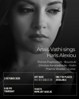 Η πρώτη συναυλία θα πραγματοποιηθεί την Πέμπτη 2 Οκτωβρίου, με ένα πρόγραμμα αφιερωμένο στο πλούσιο και συγκινητικό έργο της Χάρις Αλεξίου, μιας φωνής που έχει σημαδέψει ανεξίτηλα το ελληνικό τραγούδι. Η Αναΐς Βάθη ερμηνεύει τραγούδια που αγαπήθηκαν όσο λίγα, σε ένα ταξίδι γεμάτο πάθος και μνήμη.