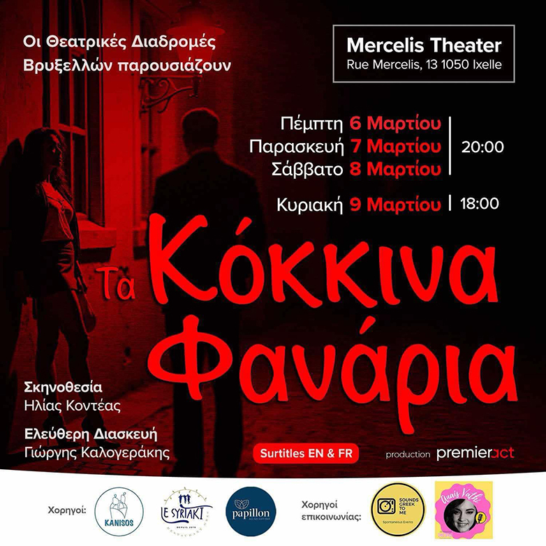 Σε μια από τις πιο γοητευτικές γειτονιές των Βρυξελλών, η Αναΐς Βάθη συναντά τον σκηνοθέτη Ηλία Κοντέα για μια συζήτηση γύρω από την επερχόμενη παράσταση Κόκκινα Φανάρια. Το έργο, που θα παρουσιαστεί στις 6, 7, 8 και 9 Μαρτίου, επαναπροσδιορίζεται μέσα από μια σύγχρονη σκηνοθετική ματιά, φέρνοντας στο φως διαχρονικά ζητήματα για τον έρωτα, τις ανθρώπινες σχέσεις και τη ζωή.