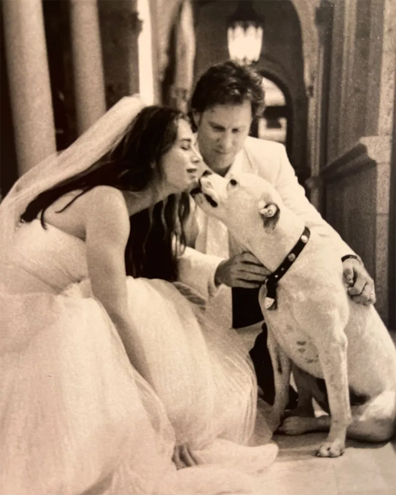 Η διάσημη ηθοποιός μοιράστηκε για πρώτη φορά δύο σπάνιες φωτογραφίες από τον γάμο της σε ανάρτησή της στo Instagram. Και στα δύο στιγμιότυπα έδειχνε υπέροχη με το στράπλες λευκό νυφικό της στο πλευρό του συζύγου της.