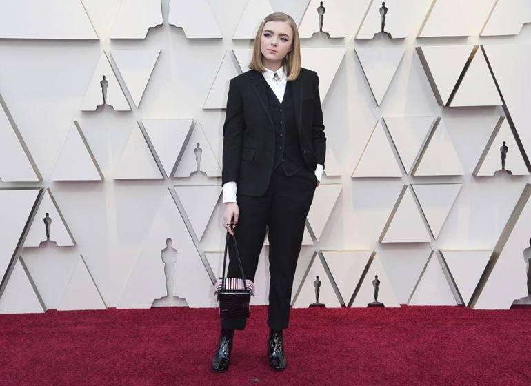 Η Έλσι Φίσερ, η οποία ξεκίνησε την καριέρα της ως παιδί – θαύμα σε τηλεοπτικές σειρές, φόρεσε μαύρο κοστούμι, μαύρο γιλέκο και λευκό πουκάμισο Thom Browne.