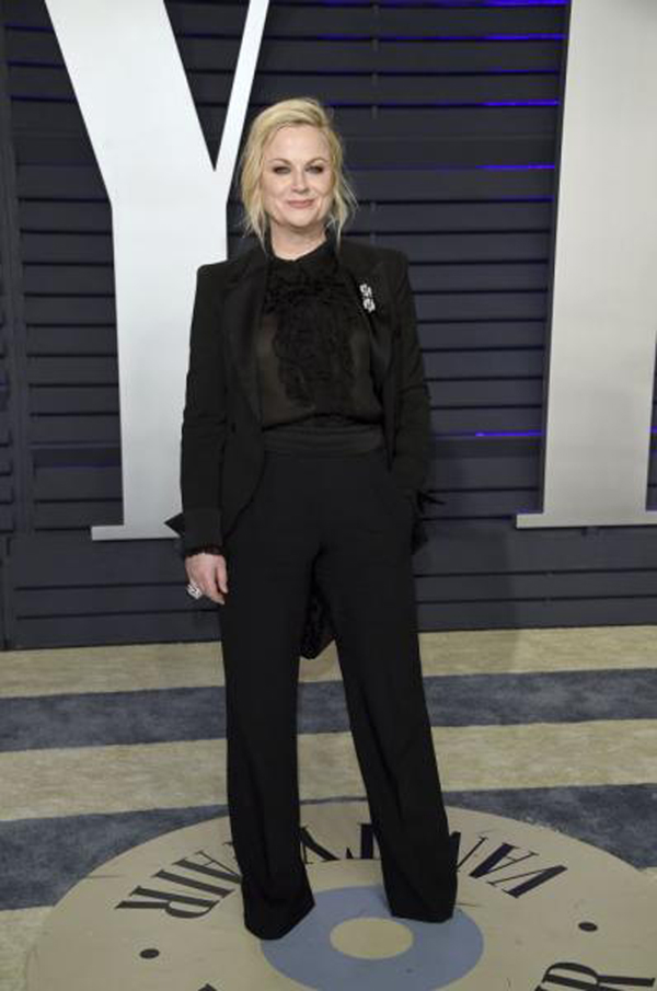 Μαύρο φράκο φόρεσε η Έιμι Πόελερ, Αμερικανίδα ηθοποιός και σκηνοθέτις με καρφίτσα από πέρλες στο πέτο.