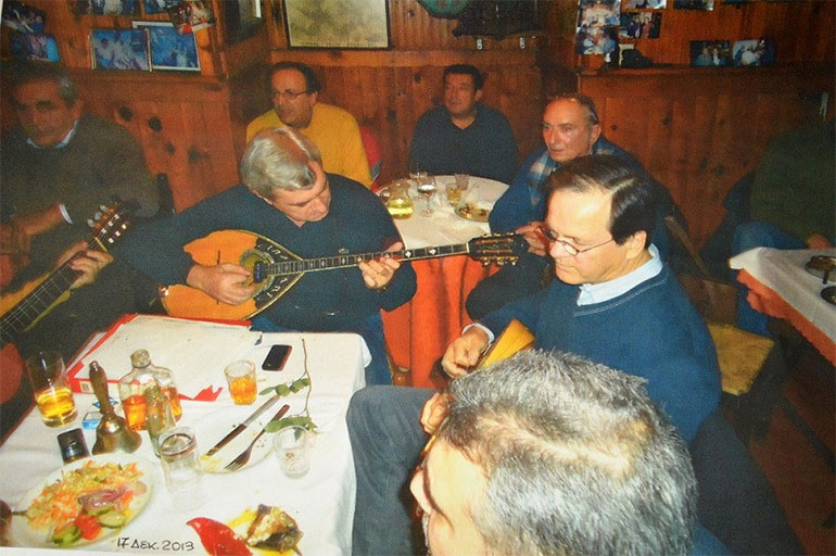 Η παρουσία του καταλυτική και καθοριστική, κυρίως για τους νεοφώτιστους! Βλέπετε, όποιος διαβεί την πόρτα του μαγαζιού θεωρείται αυτόματα μέλος της διευρυμένης παρέας. Είναι σαν όλοι να κάθονται στο ίδιο τραπέζι κι ας είναι τα τραπέζια διάσπαρτα στον χώρο. Γίνονται όλοι μια παρέα που συν διασκεδάζει, τρώγοντας, πίνοντας, τραγουδώντας αλλά και … χορεύοντας, αρκεί να βρεθεί ελεύθερος χώρος.