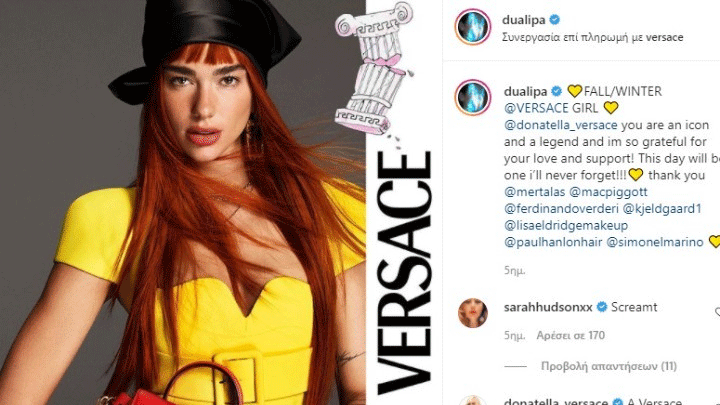 Η Dua Lipa πρωταγωνιστεί στην πιο πρόσφατη καμπάνια του οίκου Versace, προσθέτοντας ένα ακόμη στη λίστα των επιτευγμάτων της.
