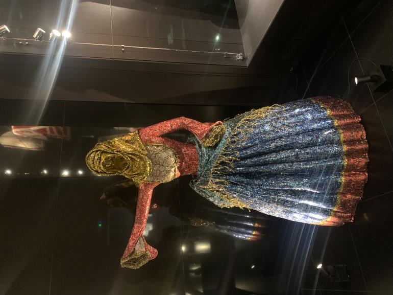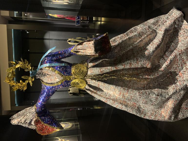 Η συστέγαση – συνομιλία των έργων του Νίκου Φλώρου, με τις παραδοσιακές ενδυμασίες της μόνιμης συλλογής, είναι κάθε άλλο παρά τυχαία. Πρόκειται για δύο συλλογές καταπληκτικές που συναγωνίζονται σε φαντασμαγορικότητα, μοναδικότητα και ποιότητα ενώ συνάμα συνυπάρχουν αρμονικά και αλληλοσυμπληρώνονται. Η συλλογή ελληνικών ενδυμασιών, αποτελεί έργο ζωής για τη Βικτώρια Καρέλια και ο υπερσύγχρονος χώρος στέγασής της συνιστά τον ιδανικό καμβά για να αναδειχθούν όλα τα έργα. Οι δύο συλλογές έχουν κοινό άξονα την ιστορία και την παράδοση δημιουργώντας μία σύμπνοια πατροπαράδοτου και σύγχρονου, παρελθόντος και παρόντος, υφάσματος και μετάλλου!