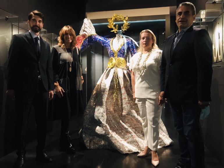 Η συστέγαση – συνομιλία των έργων του Νίκου Φλώρου, με τις παραδοσιακές ενδυμασίες της μόνιμης συλλογής, είναι κάθε άλλο παρά τυχαία. Πρόκειται για δύο συλλογές καταπληκτικές που συναγωνίζονται σε φαντασμαγορικότητα, μοναδικότητα και ποιότητα ενώ συνάμα συνυπάρχουν αρμονικά και αλληλοσυμπληρώνονται. Η συλλογή ελληνικών ενδυμασιών, αποτελεί έργο ζωής για τη Βικτώρια Καρέλια και ο υπερσύγχρονος χώρος στέγασής της συνιστά τον ιδανικό καμβά για να αναδειχθούν όλα τα έργα. Οι δύο συλλογές έχουν κοινό άξονα την ιστορία και την παράδοση δημιουργώντας μία σύμπνοια πατροπαράδοτου και σύγχρονου, παρελθόντος και παρόντος, υφάσματος και μετάλλου!