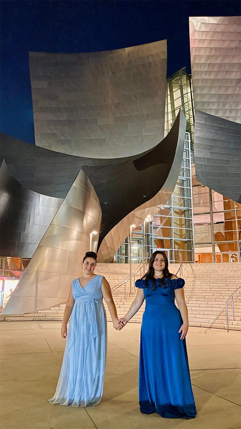 Αγγελίνα και Εβελίνα στην είσοδο του εντυπωσιακού Walt Disney Concert Hall