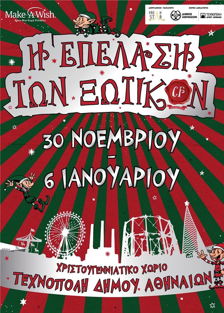 Τα Ξωτικά του Άγιου Βασίλη δεν κάθονται ποτέ ήσυχα… Δουλεύουν ασταμάτητα έναν ολόκληρο χρόνο, φτιάχνοντας παιχνίδια και καταστρώνοντας εκπλήξεις, ώστε εφέτος τα Χριστούγεννα να μοιράσουν αγάπη και χαρά σε όλα τα παιδιά και τους γονείς τους! Η Επέλαση των Ξωτικών, το μεγαλύτερο χριστουγεννιάτικο χωριό της πόλης, δίνει ξεχωριστό αέρα στις Γιορτές σε έναν ειδικά διαμορφωμένο χώρο στην Τεχνόπολη Δήμου Αθηναίων.
