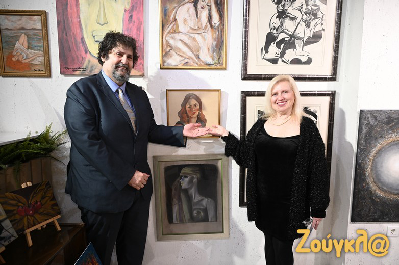 Αφροδίτη Δρακοπούλου – Σάρδη – Κωνσταντίνος Λαγός δίπλα στο έργο του κορυφαίου εκλιπόντος εικαστικού Γιώργου Σάρδη