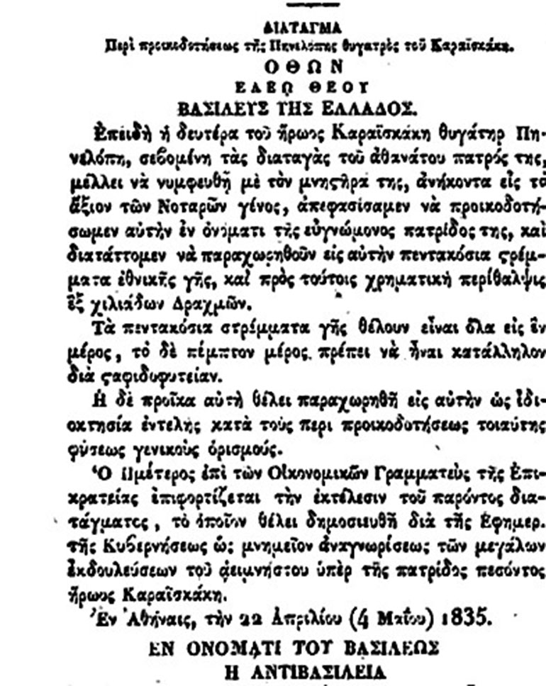 Το έγγραφο υπογράφει, μετά τους μάρτυρες, ο Αντώνιος Καρόρης, «νοτάριος της Πολιτείας Αθηνών» και όπως διευκρινίζει ο ιστορικός Δ. Γέροντας στο έργο του «ΙΣΤΟΡΙΑ ΤΩΝ ΑΘΗΝΑΙΩΝ», η φράση «ίσον και όμοιον» αντιστοιχεί στη σημερινή «ακριβές αντίγραφον», η δε λέξη «μοιράδιον» σημαίνει μερίδιο.