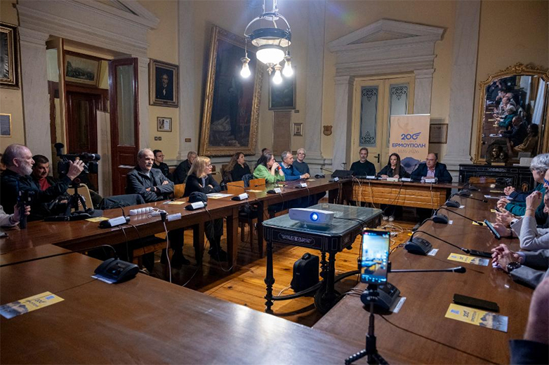 Στιγμιότυπο από την παρουσίαση του επετειακού προγράμματος στο Δημαρχιακό Μέγαρο Σύρου