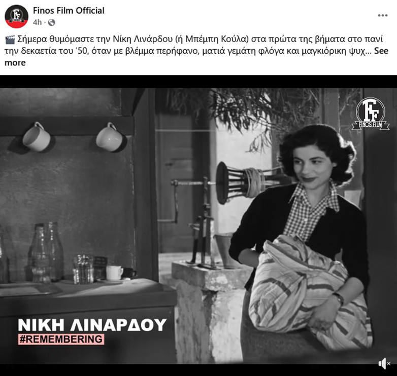 «Σήμερα θυμόμαστε τη Νίκη Λινάρδου (ή Μπέμπη Κούλα) στα πρώτα της βήματα στο πανί τη δεκαετία του ’50, όταν με βλέμμα περήφανο, ματιά γεμάτη φλόγα και μαγκιόρικη ψυχή, έδωσε ζωή σε έναν από τους πιο γοητευτικούς ρόλους του ελληνικού σινεμά.