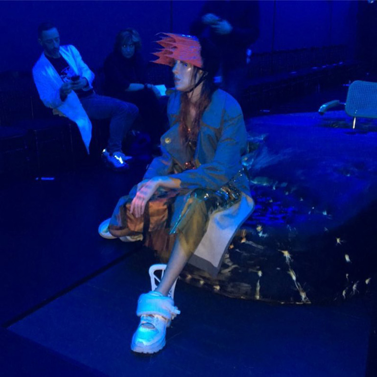 Είναι η πρώτη φορά που ο Γκαλιάνο ζήτησε σε καλλιτέχνη να παρουσιάσει καινούργια έργα τέχνης δίπλα σε κολεξιόν του Margiela. Η Τζέσι είναι απόφοιτος της Σχολής Ντιζάιν του Ροντ Άιλαντ, και τη δουλειά της την είδαμε στην Whitney Biennial, πέρυσι. Παρουσιάζει άμορφα γλυπτά, σαν από σφαίρες, καλυμμένα με πάτσγουορκ από ετερόκλητα υφάσματα.