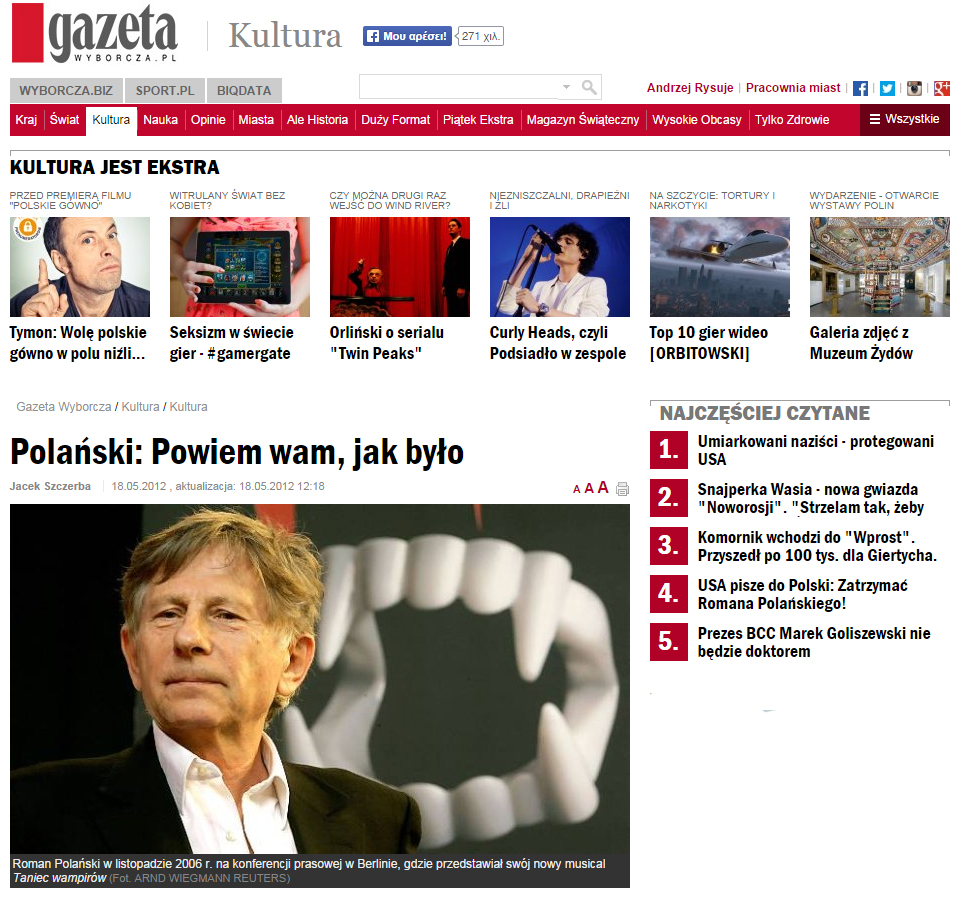 Διαβάστε επίσης: Πολάνσκι: Θέτει όρους για να γυρίσει ταινία στην Πολωνία
