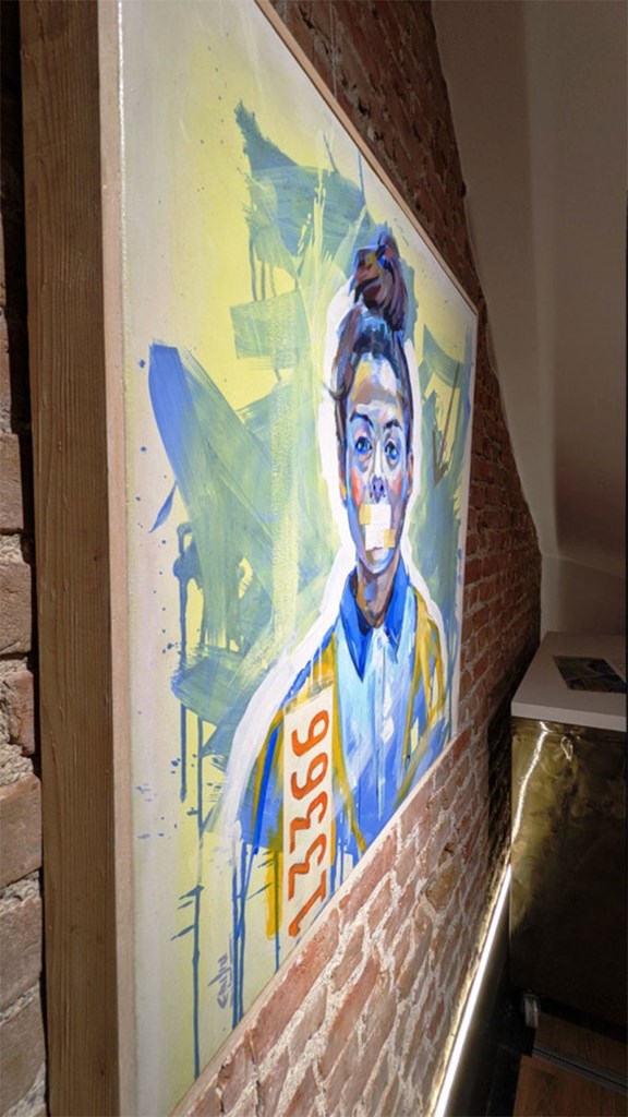Στη διάρκεια της έκθεσης, που θα διαρκέσει μέχρι τις 30 Νοεμβρίου, παρουσιάστηκαν τρία ζωγραφικά έργα της εικαστικού, εμπνευσμένα από την κακοποίηση των γυναικών αλλά και αντικείμενα των θυμάτων έμφυλης βίας, που φιλοξενήθηκαν στο Σπίτι Ανοιχτής Φιλοξενίας της ΕΚΔ.