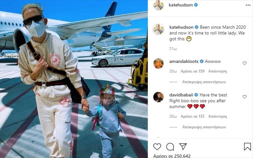 Η Κέιτ Χάντσον κάνει διακοπές στην Ελλάδα με την οικογένειά της και μοιράζεται φωτογραφίες στον προσωπικό λογαριασμό της στο instagram.