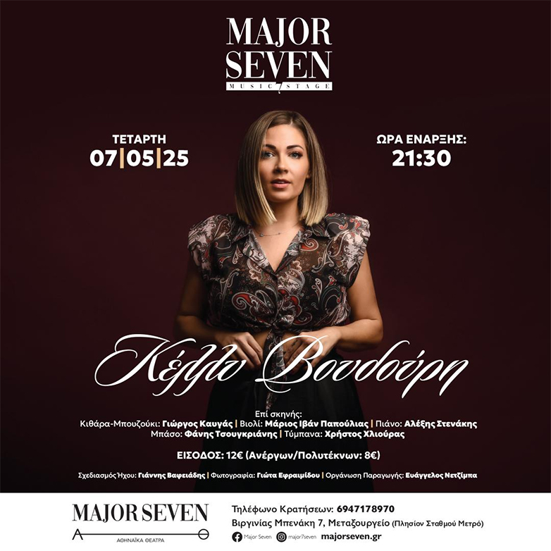 Η Κέλλυ Βουδούρη μας προσκαλεί σε μία μοναδική συναυλία την Τετάρτη 7 Μαΐου στη μουσική σκηνή Major Seven στο Μεταξουργείο!