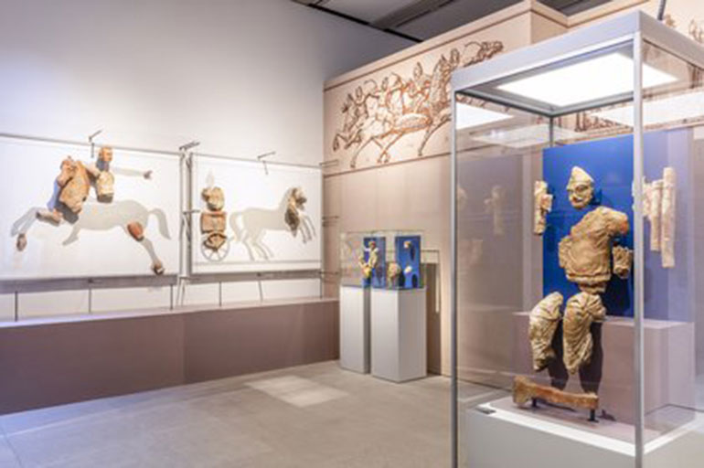 Για πρώτη φορά εκτίθενται στην Ευρώπη και εξαιρετικής ποιότητας προσωπογραφίες από τερακότα του 1ου αιώνα πΧ. Βρέθηκαν στο ανακτορικό συγκρότημα Χαλτσαγιάν της Βακτριανής (νότιο Ουζμπεκιστάν) και είναι ένα ακόμα απτό παράδειγμα της μίξης των πολιτισμών. Τόσο τα ρεαλιστικά χαρακτηριστικά των προσώπων όσο και οι κίονες στους οποίους στηρίζεται η κεντρική αίθουσα έχουν εμφανώς ελληνιστική επιρροή.