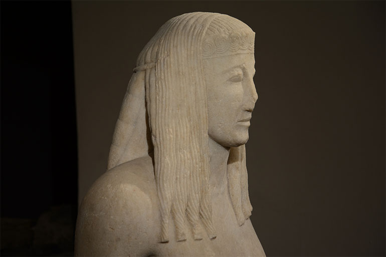 Συμπληρώνοντας παλαιότερα, της ίδιας περιόδου, ευρήματα, επίσης, από το νεκροταφείο της Αρχαίας Θήρας –τμήματα κόρης και κούρων στην πρωτοπόρα ναξιακή παράδοση, σε κακή, όμως, κατάσταση διατήρησης, αναδεικνύει επιπλέον την οικονομική ευμάρεια και τη διάθεση προβολής της θηραϊκής αριστοκρατίας της εποχής, καθώς και τις αισθητικές προτιμήσεις της και τη στενή επαφή της με το καλλιτεχνικό γίγνεσθαι.