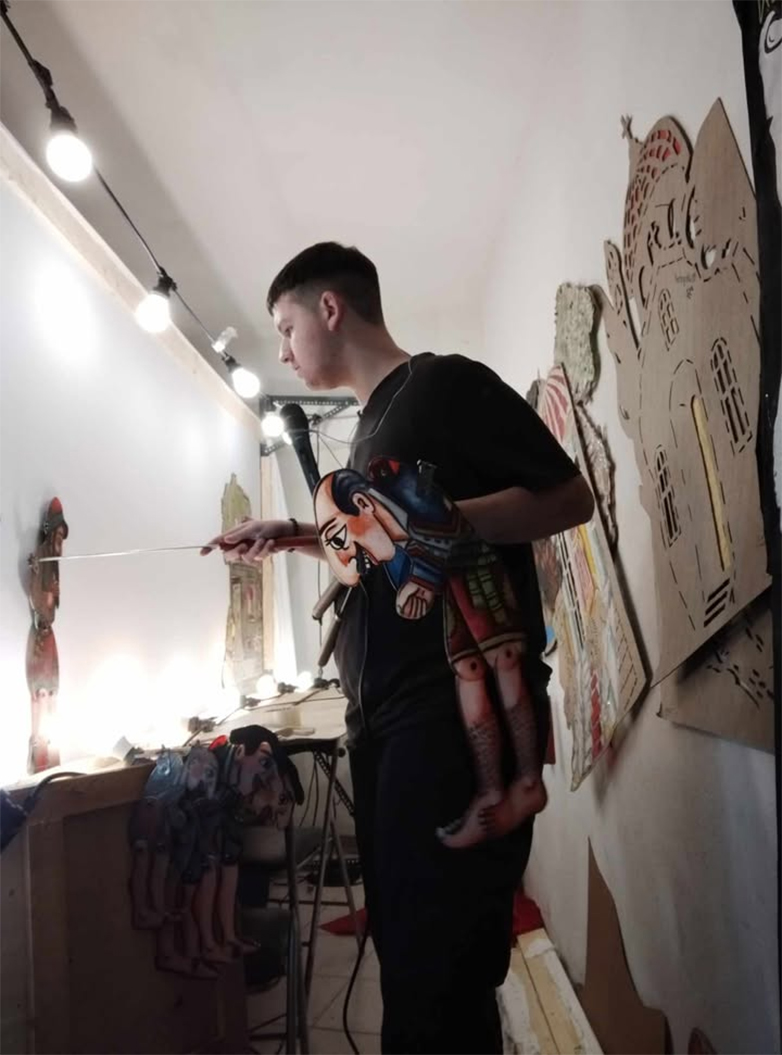 Στο έργο αυτό, ο Αντώνης Βρεττός αναλαμβάνει τον ρόλο του καραγκιοζοπαίχτη, ζωντανεύοντας τις φιγούρες και το σκηνικό, με τη βοήθεια των Χρήστου Αγγελόπουλου και Κώστα Σπυρόπουλου.