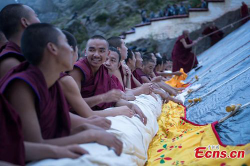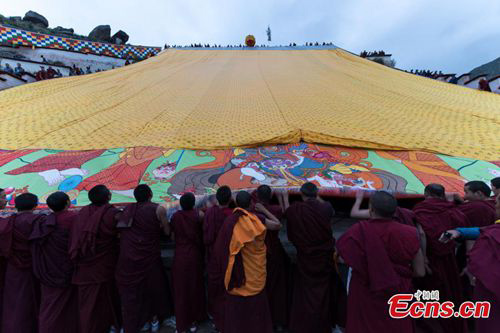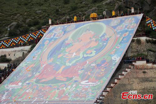 Οι εκδηλώσεις του φεστιβάλ ξεκίνησαν από το μοναστήρι Ντρεπούνγκ, το μεγαλύτερο Βουδιστικό μοναστήρι του Θιβέτ με την παρουσίαση μίας τεράστιας μεταξοτυπίας με τη μορφή του Βούδα.