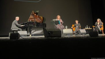 Στο πιάνο, τη συνόδεψε ο γερμανός μουσικός Χένινγκ Σμιτ. Στη σκηνή, οι ηθοποιοί Δανάη Χατζηπέτρου και Ντόμινικ Ντος-Ράις διάβασαν τους μελοποιημένους από τον Μίκη Θεοδωράκη στίχους του Ιάκωβου Καμπανέλλη, επιζώντα του Μαουτχάουζεν, του μεγαλύτερου στρατοπέδου εξόντωσης στην Αυστρία, με περισσότερους από 90.000 νεκρούς.