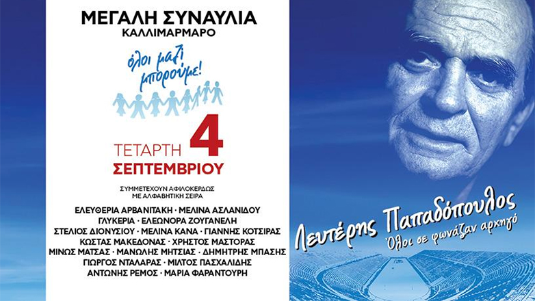 Την Τετάρτη 4 Σεπτεμβρίου, το Παναθηναϊκό Στάδιο θα γεμίσει με μουσικές και μελωδίες που έχει ντύσει στιχουργικά ο Λευτέρης Παπαδόπουλος.