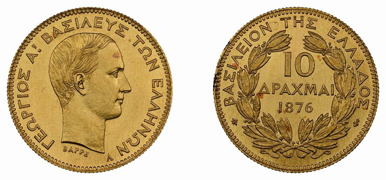 Ακόμα ένα πολύ σπάνιο νόμισμα, αυτού του Γεωργίου του πρώτου, οι 10 δραχμές του 1876, πουλήθηκε σε τιμή ρεκόρ, στις 25.000 ευρώ.