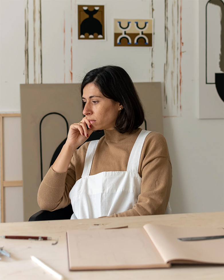 Η Ελένη Ψυλλάκη (γενν. 1981) εκπαιδεύτηκε αρχικά ως αρχιτέκτονας και το υπόβαθρο της στην αρχιτεκτονική και τον σχεδιασμό είναι αυτό που επηρεάζει την καλλιτεχνική της πρακτική. Οι πίνακες και τα έργα της σε χαρτί χαρακτηρίζονται από γραμμικό σκίτσο, ευθείες γραμμές, κλιμάκωση, αλλά κυρίως από την αγάπη της για τη συμμετρία.