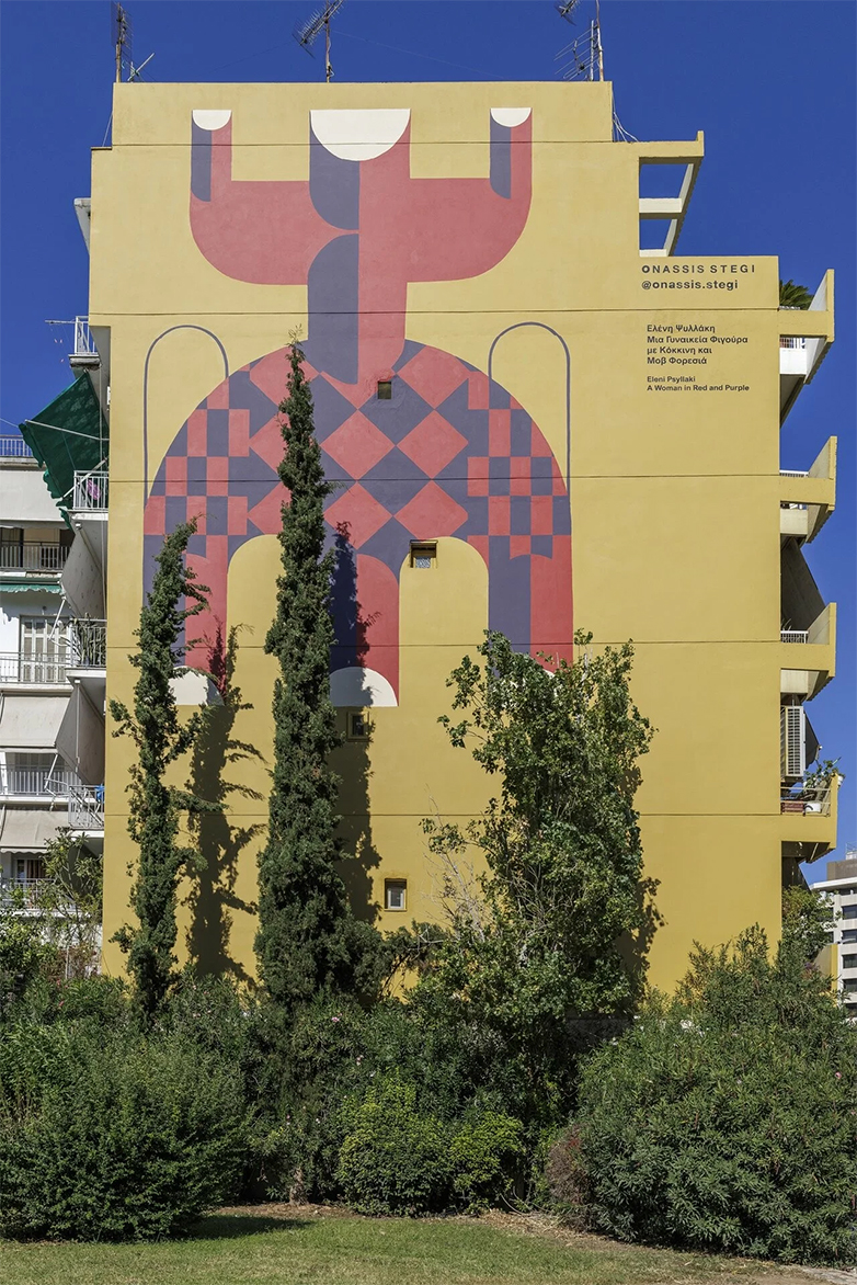 Το Ίδρυμα Ωνάση συνεχίζει να στηρίζει Έλληνες δημιουργούς και να μεταμορφώνει τον δημόσιο χώρο της πόλης. Μετά το «Φιλί» του Ηλία Παπαηλιάκη στην πλατεία Αυδή στο Μεταξουργείο, το «Κύμα/Νεύμα» της Σοφίας Στεβή στην πλατεία Μαβίλη, το «She Who Protects» του Αριστείδη Λάππα στην Ομόνοια, την in situ εγκατάσταση από νέον «Το Φυλαχτό όλων των Όντων» του Άγγελου Πλέσσα στην Πατησίων και τη χρυσή «Σταγόνα της Γνώσης» της Νικομάχης Καρακωστάνογλου που αιωρείται στον Νέο Κόσμο, η αρχιτέκτονας και ζωγράφος Ελένη Ψυλλάκη δημιουργεί στη γειτονιά της Στέγης, στην οδό Λαγουμιτζή 42, μια τοιχογραφία που φιλοδοξεί να γίνει σύντομα το νέο ινσταγκραμικό τοπόσημο της Αθήνας.