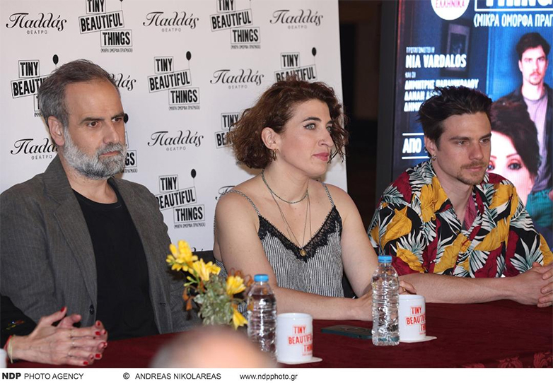 Στο φουαγέ του Θεάτρου Παλλάς πραγματοποιήθηκε τη Δευτέρα 5 Μαΐου, η συνέντευξη Τύπου για την παράσταση «Tiny Beautiful Things» (Μικρά Όμορφα Πράγματα) της Nia Vardalos που θα κάνει πρεμιέρα την Παρασκευή 16 Μαΐου. Εκεί βρέθηκαν οι συντελεστές της παράστασης, Nia Vardalos, Σπύρος Κατσαγάνης, Δημήτρης Παπανικολάου, Δανάη Λουκάκη και Δημήτρης Κίτσος, οι οποίοι μίλησαν για πρώτη φορά με τους εκπροσώπους του Τύπου για το πώς μια παράσταση μπορεί να μας θυμίσει ότι τα Μικρά Όμορφα Πράγματα της ζωής μπορούν να συμβούν στον καθένα από εμάς.