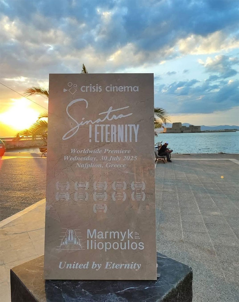 Στον κατάμεστο ατμοσφαιρικά φωτισμένο Φάρο του Ναυπλίου με φόντο το εντυπωσιακό Μπούρτζι πραγματοποιήθηκε η παγκόσμια πρεμιέρα της κινηματογραφικής ταινίας μεγάλου μήκους,«Sinatra! Eternity» σε σκηνοθεσία Γιώργου Παπαθεοδώρου & Michael Oblowitz και παραγωγή Crisis Cinema.
