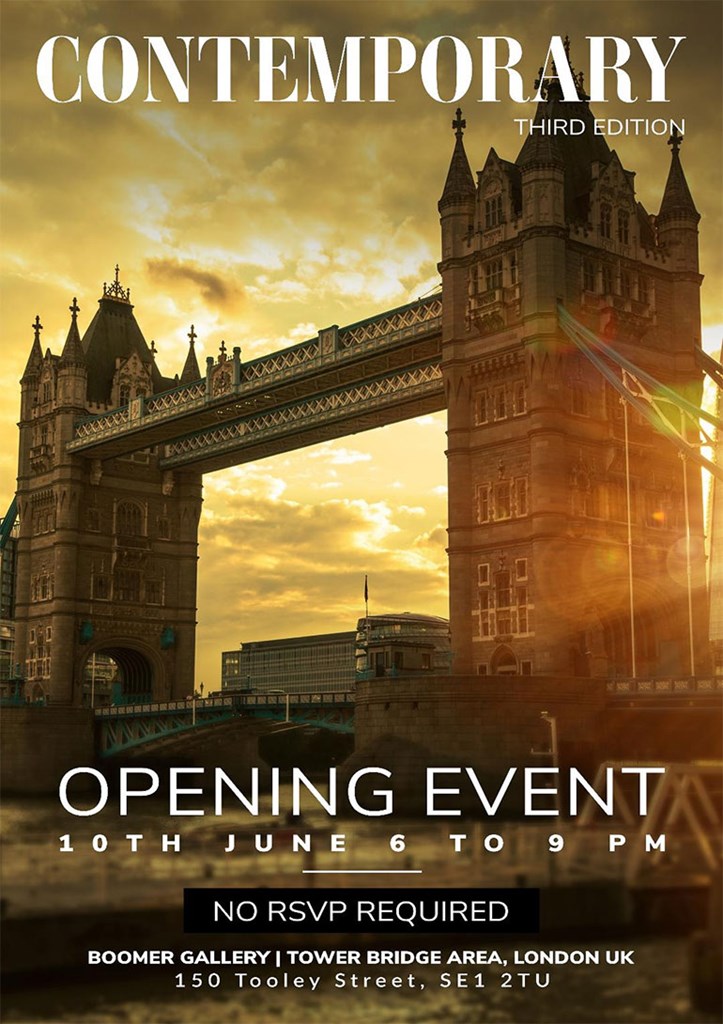 Η καινούρια της έκθεση με τίτλο «ContemporaryThird Edition» θα διαρκέσει από την Παρασκευή 10 Ιουνίου έως την Τετάρτη 15 Ιουνίου στον χώρο της στην περιοχή Tower Bridge (150 Tooley Street, SE1 2TU).