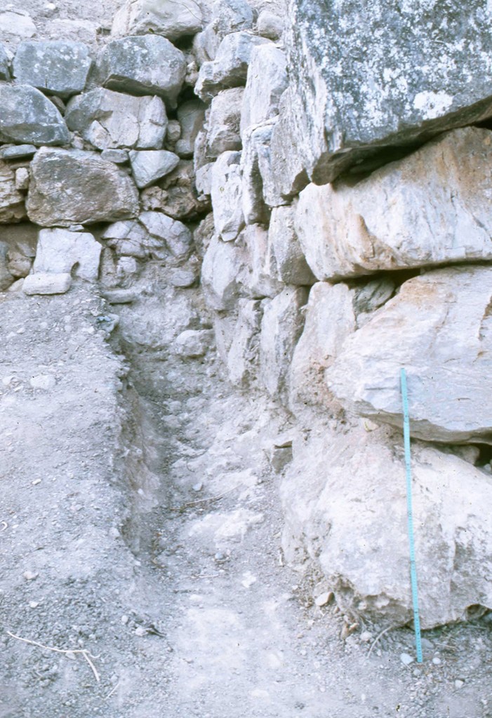 Φωτογραφία με το εντυπωσιακό, «κυκλώπειας κατασκευής», Παλαιοανακτορικό τείχος του Πετρά Σητείας από το αρχείο της ανασκαφής Πετρά). Σώζεται σε ύψος αρκετά μεγαλύτερο των 2 μ.