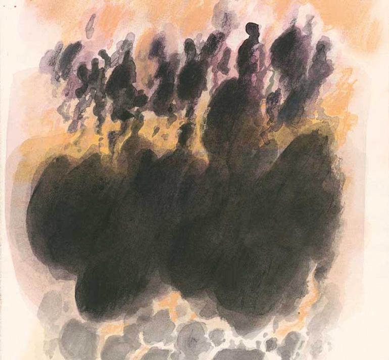 Στους δύο ορόφους των περιοδικών εκθέσεων του Μουσείου θα παρουσιαστούν περίπου 60 ζωγραφικά έργα μεγάλων και μικρότερων διαστάσεων, που χωρίζονται σε δύο ενότητες: Στα μακρόστενα, κάθετα έργα με ανεξίτηλα χρώματα σε πανί − ασπρόμαυρα και γκρίζα ή έντονα χρωματιστά − και στη σειρά έργων με θέμα τον ουρανό, ζωγραφισμένα σε μουσαμά ή χαρτί με χρώματα λαδιού, μελάνια, ξυλομπογιές, γραφίτες, χρωματιστά κάρβουνα.