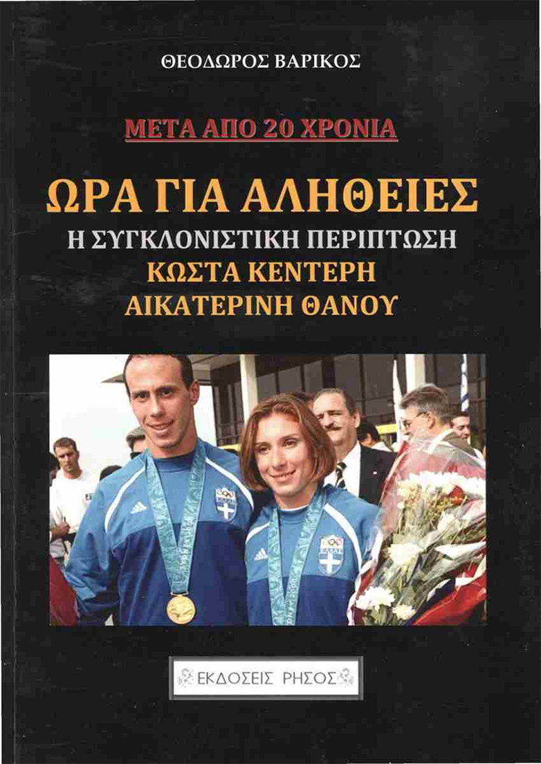 Tο βιβλίο του Θόδωρου Βαρίκου «Η συγκλονιστική περίπτωση Κώστα Κεντέρη – Αικατερίνη Θάνου», το οποίο κυκλοφόρησε επ’ αφορμή της τελετής των Ολυμπιακών Αγώνων του 2024 στο Παρίσι, ρίχνει φως στα πεπραγμένα μιας δύσκολης υπόθεσης που διαδραματίσθηκε στους Ολυμπιακούς αγώνες του 2004 στην Αθήνα και αφορά τον αποκλεισμό από την τελική φάση των Ολυμπιακών Αγώνων δύο σπουδαίων Ελλήνων αθλητών του Κώστα Κεντέρη και της Κατερίνας Θάνου και της καταδίκης των γιατρών στελεχών του ΚΑΤ.