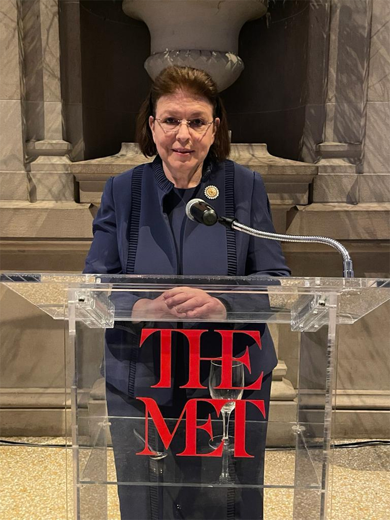 Η Λίνα Μενδώνη στην ομιλία της σημείωσε ότι «Ο επαναπατρισμός αρχαιοτήτων που ανήκουν στην Ελλάδα αλλά βρίσκονται σήμερα στο εξωτερικό, αποτελεί ζήτημα εθνικής σημασίας και υψηλής πολιτικής προτεραιότητας για το Υπουργείο Πολιτισμού της Ελληνικής Δημοκρατίας. Η διεθνής συνεργασία και οι συνέργειες μέσω διμερών και πολυμερών συμφωνιών για τον σκοπό αυτόν υποστηρίζονται και επιδιώκονται πάντα. Ωστόσο κάθε περίπτωση επαναπατρισμού είναι μοναδική. Στην περίπτωση της συλλογής Leonard Stern, της σημαντικότερης ιδιωτικής συλλογής κυκλαδικών αρχαιοτήτων διεθνώς, η συνήθης τακτική του Υπουργείου για εξωδικαστική διευθέτηση της διεκδίκησης υπαγορεύτηκε στην πραγματικότητα από την παντελή έλλειψη υποστηρικτικών στοιχείων. Όπως εξακριβώθηκε από τις αρμόδιες Υπηρεσίες του Υπουργείου, καμία από τις 161 αρχαιότητες δεν έχει ποτέ καταγραφεί ως κλεμμένη και επίσης δεν υπάρχει κανένα στοιχείο ή οποιαδήποτε ενδεικτική πληροφορία για το πότε και πώς ανακαλύφθηκαν και εξήχθησαν από την ελληνική επικράτεια ή για τη διαδρομή και την τύχη τους μέχρι να φτάσουν στη Νέα Υόρκη».