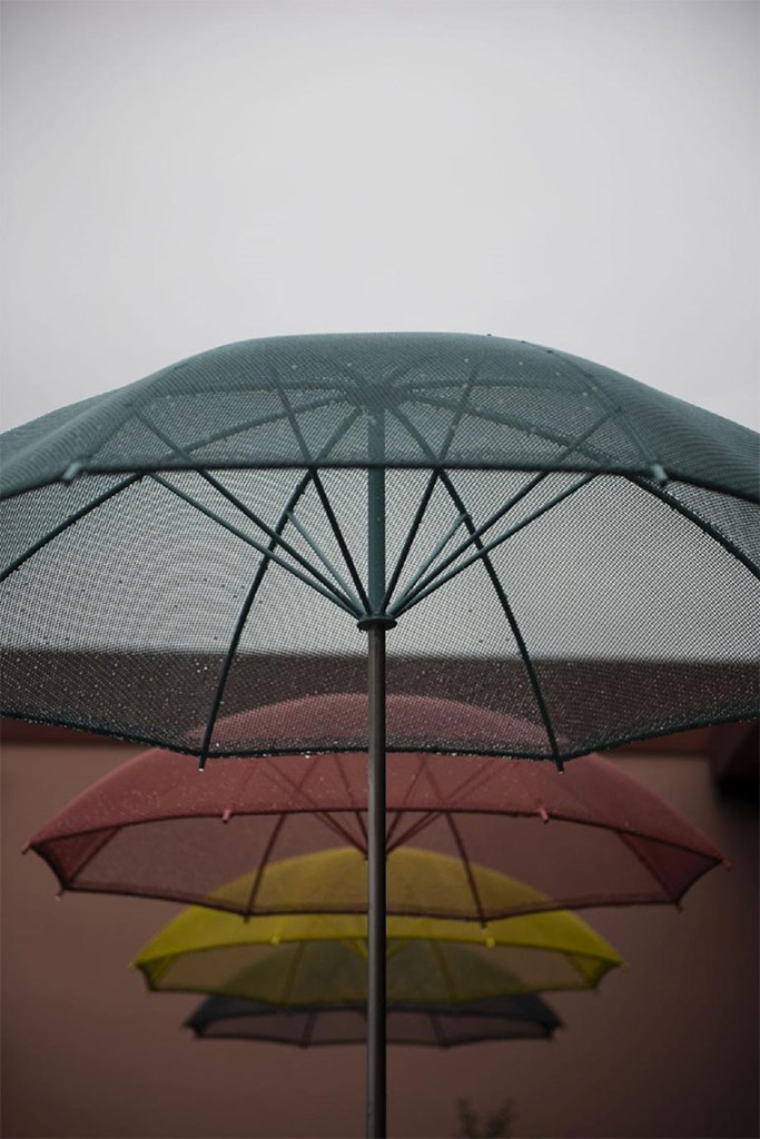 Η δεύτερη φορά που οι ομπρέλες του Γιώργου Ζογγολόπουλου απέκτησαν χρώμα είναι στην ύψους 25 μ. γλυπτική εγκατάσταση Αίθριο που υπάρχει στην Πλατεία Συντάγματος.