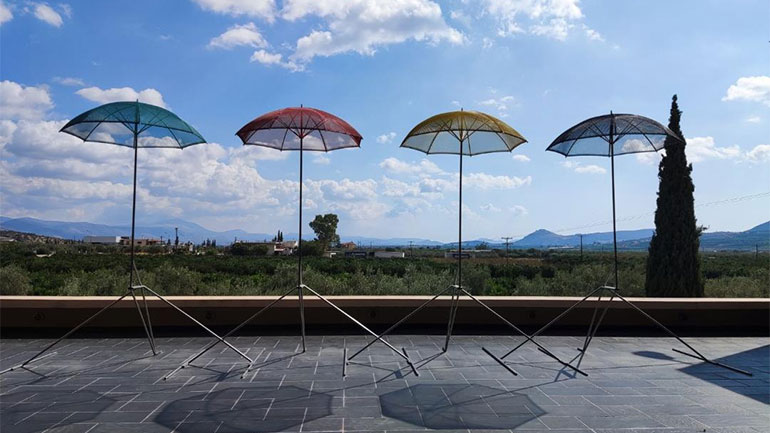 Η δεύτερη φορά που οι ομπρέλες του Γιώργου Ζογγολόπουλου απέκτησαν χρώμα είναι στην ύψους 25 μ. γλυπτική εγκατάσταση Αίθριο που υπάρχει στην Πλατεία Συντάγματος.