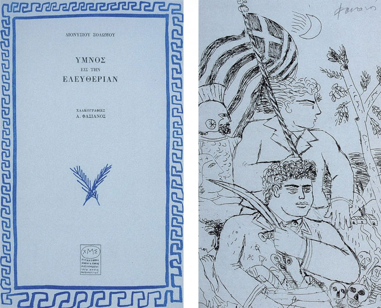 * Ο Ύμνος εις την Ελευθερίαν του Διονυσίου Σολωμού με αυθεντικές χαλκογραφίες του Αλέκου Φασιανού (1996). Ο τόμος εκδόθηκε με την ευκαιρία της επετείου των 170 χρόνων από την πρώτη έκδοση του Εθνικού Ύμνου το 1825 στο τυπογραφείο του Μεσθενέα, Μεσολόγγι. Η στοιχειοθεσία έγινε με το χέρι από κάσα με στοιχεία 16” και εκτύπωση σε επίπεδο πιεστήριο. Ο Αλέκος Φασιανός δημιούργησε δύο χαλκογραφίες, τις οποίες έχει υπογράψει. Το βιβλίο τυπώθηκε σε 120 αριθμημένα αντίτυπα.