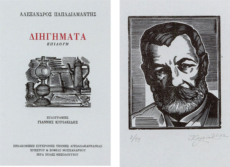 * Tα Διηγήματα του Αλέξανδρου Παπαδιαμάντη με ξυλογραφίες του Γιάννη Κυριακίδη (2002). Επίσης η στοιχειοθεσία έγινε και τυπώθηκε σε 99 αντίτυπα. Οι ξυλογραφίες που χαράχτηκαν σε όρθιο ξύλο και τυπώθηκαν σε επίπεδο πιεστήριο, φέρουν την υπογραφή του χαράκτη.