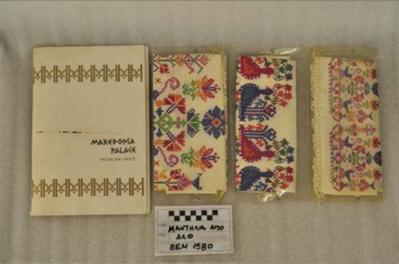 Η μελέτη συντήρησης του εξοπλισμού και των στοιχείων και εργαλείων της τυποβαφικής τέχνης περιλαμβάνει ιστορικά στοιχεία, περιγραφή και καταγραφή της κατάστασης διατήρησης τους, την φωτογραφική τεκμηρίωση των φθορών και τις προτεινόμενες εργασίες συντήρησης των κινητών αντικειμένων της π. Βιοτεχνίας Ελληνικών Μαντηλιών. Στις εργασίες συντήρησης περιλαμβάνονται, μεταξύ άλλων, επεμβάσεις καθαρισμού (μηχανικός, υγρός και χημικός), αφαίρεση προϊόντων διάβρωσης, καθαρισμός με οργανικούς διαλύτες, για την αφαίρεση λεκέδων και συγκολλητικών, υποστήριξη με ραφές ή χρήση νέων συγκολλητικών, απομάκρυνση βιολογικών παραγόντων, αποκατάσταση της βιβλιοδεσίας, αισθητική αποκατάσταση των συμπληρώσεων, επιπεδοποίηση και επανακόλληση, στην αρχική θέση τους, των ετικετών, των κουτιών και των βιβλίων.
