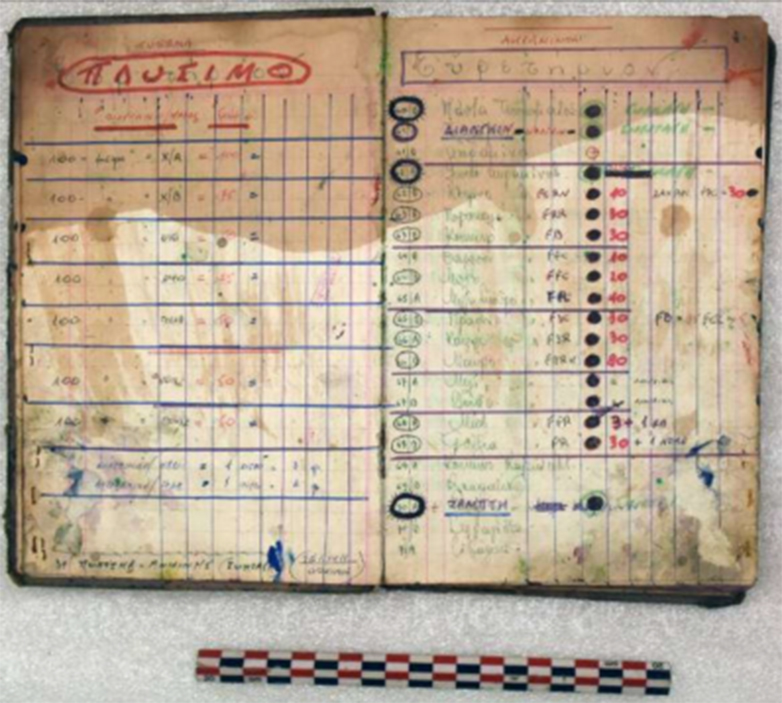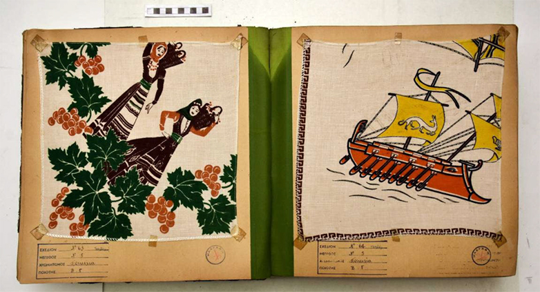 Η συλλογή βιβλίων και χαρτώων αντικειμένων αποτελείται από βιβλία-δειγματολόγια υφασμάτων, χειρόγραφα πελατολόγια, εμπορικές συναλλαγές, τηλεφωνικοί κατάλογοι και συνταγές χημικών διαλυμάτων που χρησιμοποιούσαν για τη βαφή των υφασμάτων, χάρτινα κουτιά συσκευασίας με ετικέτες παραγωγής και δείγματα υφασμάτων, φωτογραφίες καθώς και ντοσιέ με χαρτώο υλικό της εταιρείας (τιμολόγια, παραγγελίες, έξοδα κλπ.). Τα μεταλλικά στοιχεία αφορούν σε ένθετα μεταλλικά στοιχεία στους ξυλότυπους των σφραγίδων, νεότερα μεταλλικά ελάσματα για την συνένωση σπασμένων ξύλινων τμημάτων, μεταλλικά τελάρα και μεταλλικά στοιχεία στα ξύλινα τελάρα των μαντηλιών, μεταλλικά στοιχεία ξύλινων επίπλων, μεταλλικά κουτιά συσκευασίας υλικών (τσίγκινα δοχεία), επιτραπέζιες μεταλλικές ζυγαριές, στεφάνια ασφαλείας για δοχεία, πινακίδες καθώς και διάφορα αντικείμενα καθημερινής χρήσης. Περιλαμβάνονται, επίσης, πλαστικές πινακίδες παραγωγής, πλαστικά δοχεία και γυάλινα δοχεία για την παρασκευή και φύλαξη υγρών που περιείχαν χημικά αντιδραστήρια, σκόνες, διαλύτες κλπ. Κάποια περιέχουν ακόμη μέρος του περιεχόμενου τους.