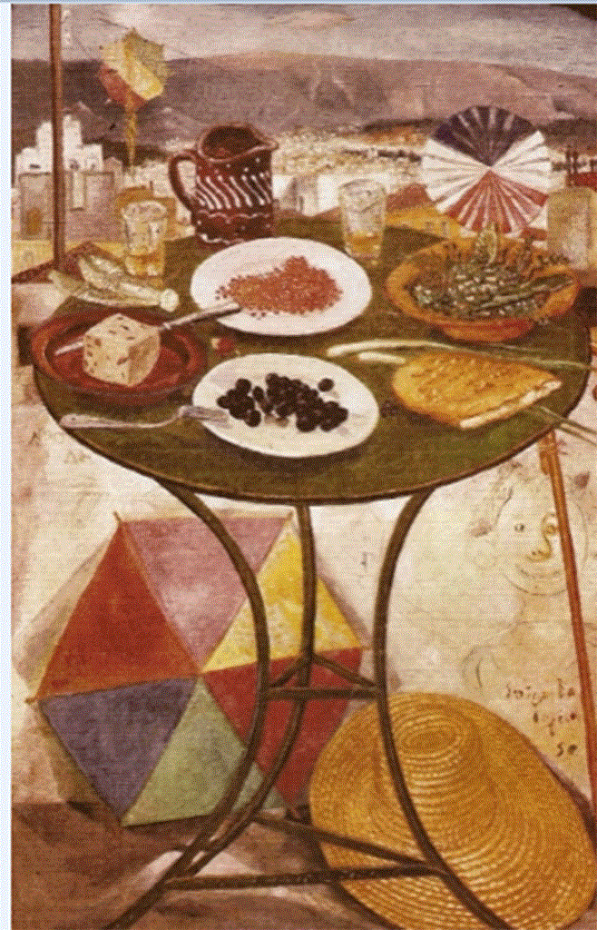 Το τραπέζι με τους μεζέδες της Σαρακοστής, έργο του μπάρμπα Σπύρου όπως τον αποκαλούσαν φίλοι και θαυμαστές του, φέρνει στο νου τα καθιερωμένα Κούλουμα στο σπίτι του ζωγράφου, στην οδό Ουέμπστερ αρ.5, δίπλα στου Φιλοπάππου με τους χαρταετούς, ορόσημο της Καθαρής Δευτέρας στην Αθήνα.