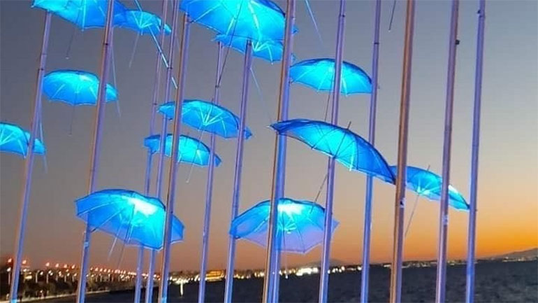 Αντιδράσεις και επικριτικά σχόλια προκάλεσαν οι φωτογραφίες που αναρτήθηκαν στα μέσα κοινωνικής δικτύωσης και παρουσίαζαν τις «Ομπρέλες» του Γιώργου Ζογγολόπουλου στη Νέα Παραλία Θεσσαλονίκης πολύχρωμα φωταγωγημένες.