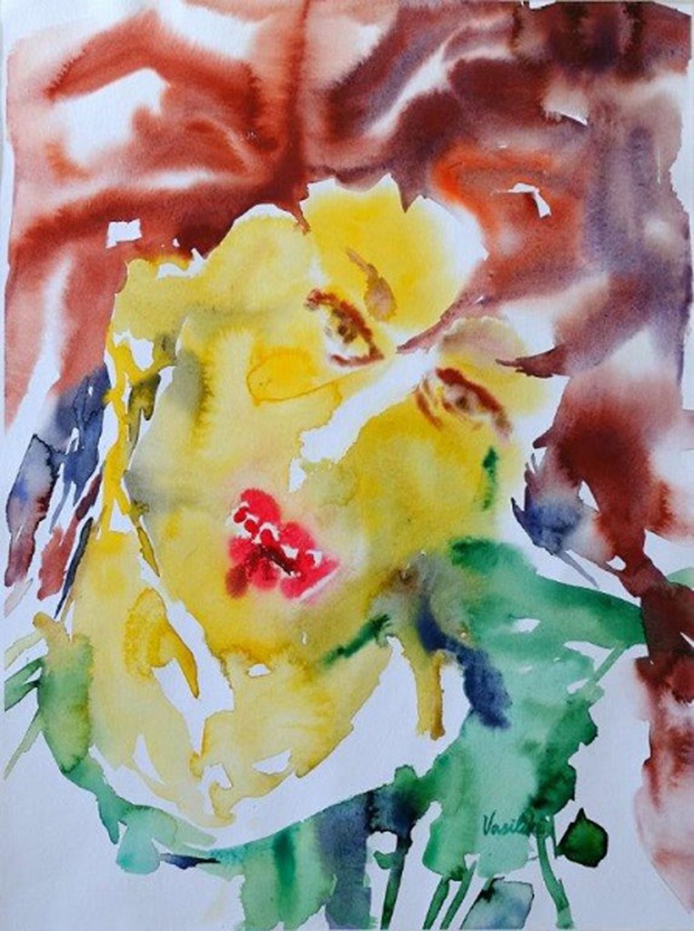 Τα αποτροπαϊκά, αρχαία σύμβολα, χειρονομίες ή λόγ ια αποτροπής του κακού, είναι διαχρονικά. Στις υδατογραφίες με τα «Γοργόνεια» δανείζομαι τα πιο γνωστά προσωπεία της Μέδουσας. Αυτά τα πρόσωπα, που υπήρχαν σε προσόψεις αρχαίων ναών ή σπιτιών, συνήθως με την αποτροπιαστική τους μορφή, αλλά μερικές φορές και με τη σαγηνευτική ομορφιά τους, είχαν σκοπό να αιχμαλωτίσουν το κακό μάτι.