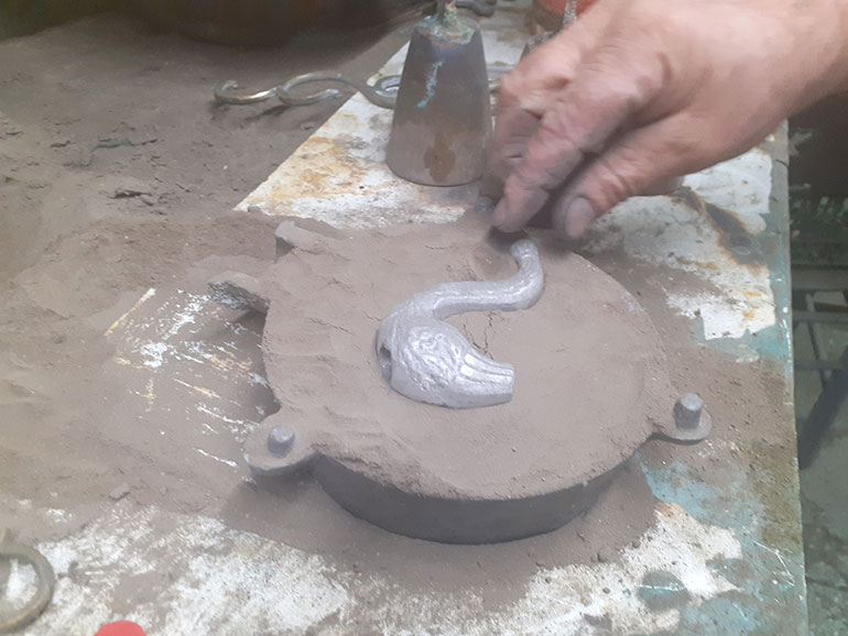 «Έχουμε τα μυστικά της αρχαίας Ελλάδας στο επάγγελμα, ας πούμε, πως συνεχίζουμε την τεχνοτροπία του Ηφαίστου, λιώνουμε το μέταλλο το βάζουμε σε καλούπια», λέει με χαμόγελο.