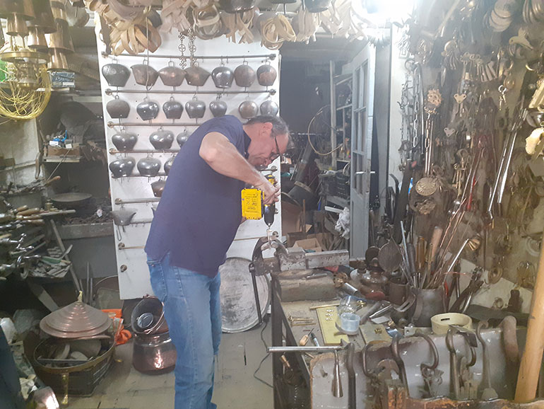 Το μαγαζί είναι στην οδό Ανεξαρτησίας, στην καρδιά της παλιάς αγοράς στα Γιάννενα, όπου τα εργαστήρια επεξεργασίας μετάλλων, τα «μπρουτζάδικα» της πόλης, σημείο αναφοράς τις περασμένες δεκαετίες, σβήνουν.